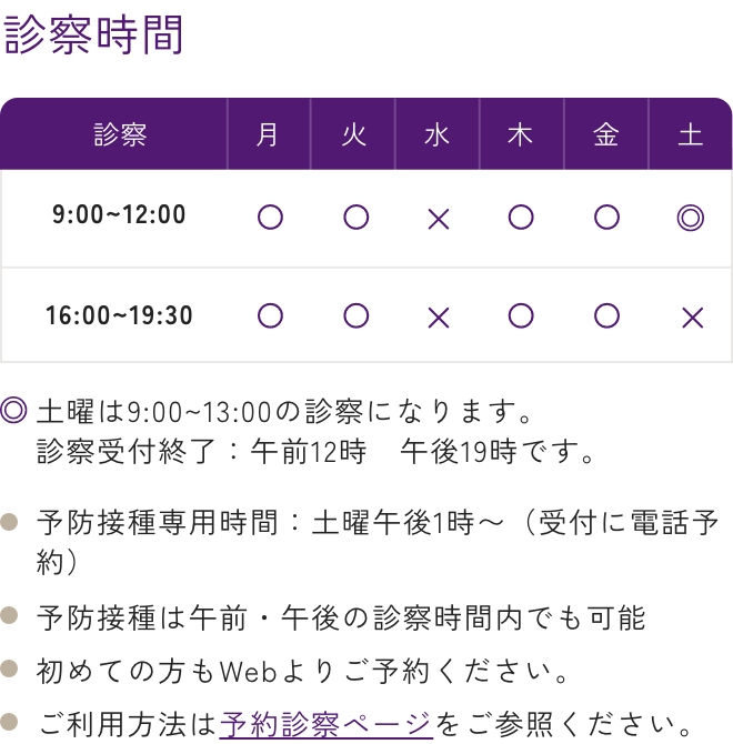 ※インフルエンザを除く各種予防接種、インフルエンザ初診の方、日帰り手術・プラズマ・セロン治療ご希望の方は